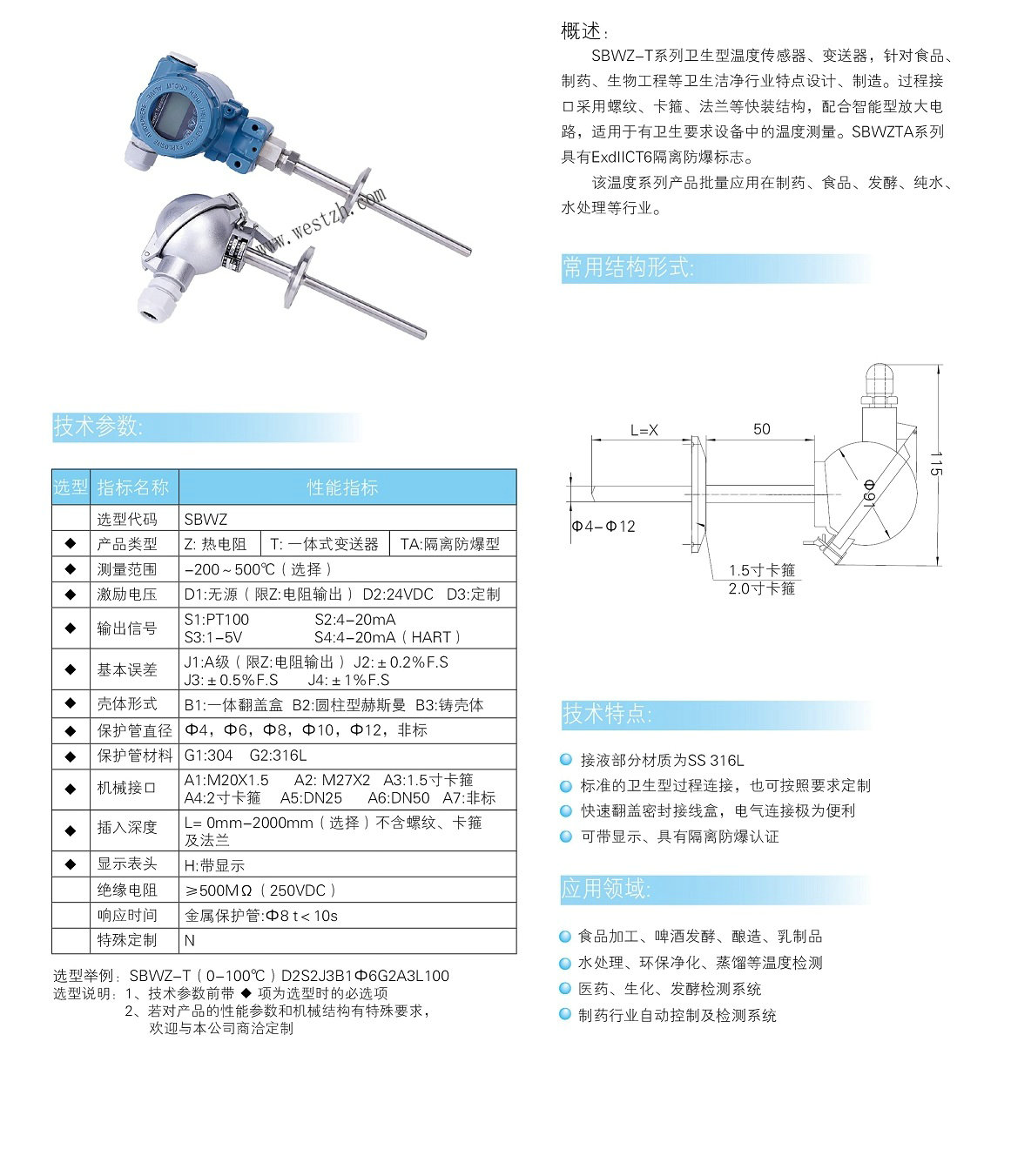 SBWZ-T 系列衛(wèi)生型溫度傳感器